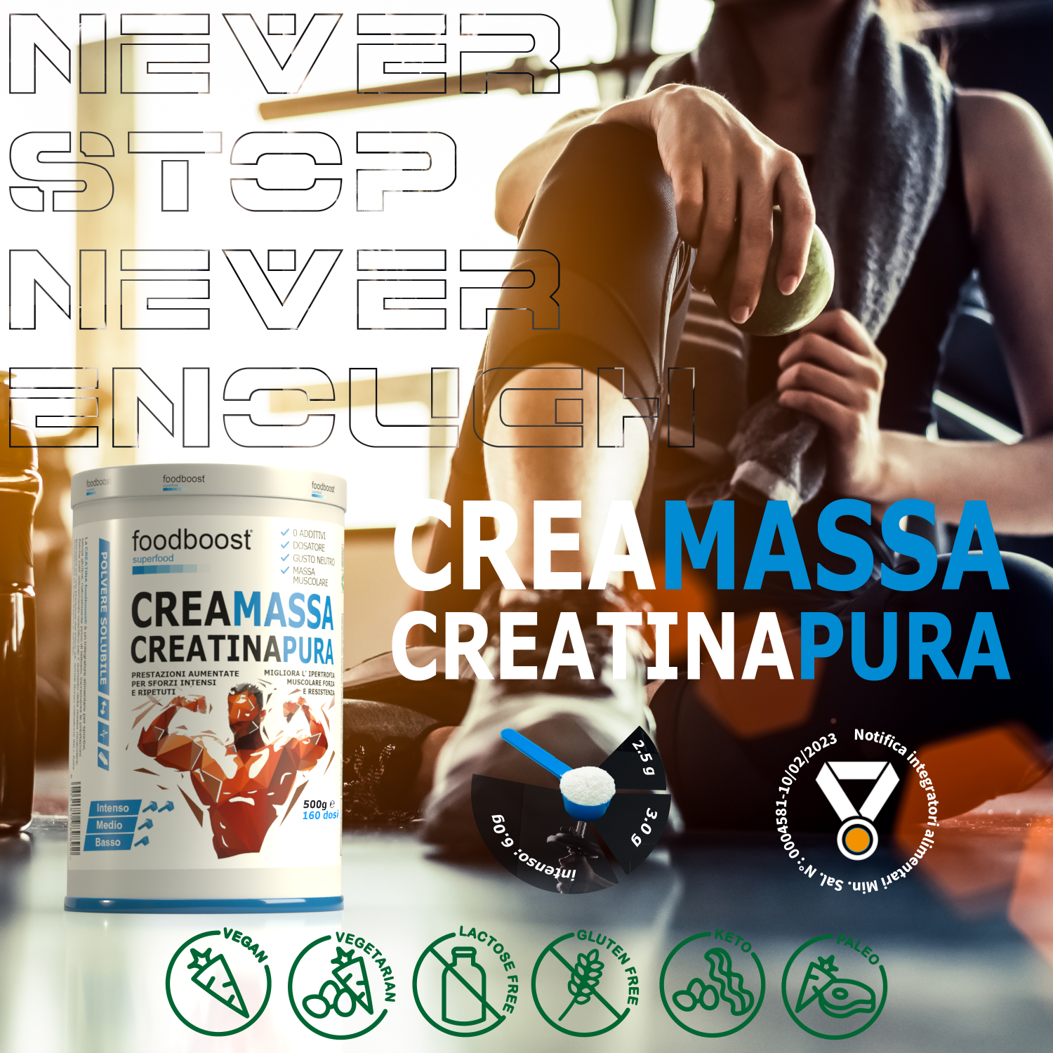 CREATINA MONOIDRATO Vai al prodotto Creatina foodboost La creatina monoidrato: formula molecolare C4H9N3O2, è un composto organico naturalmente presente nell’ organismo e presente per lo più all’ interno del tessuto...